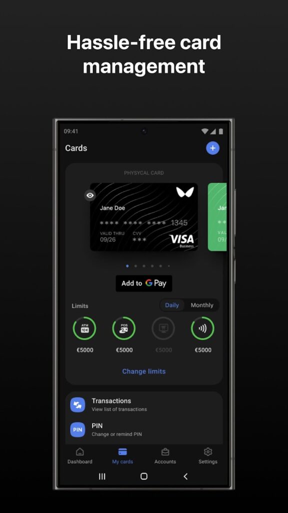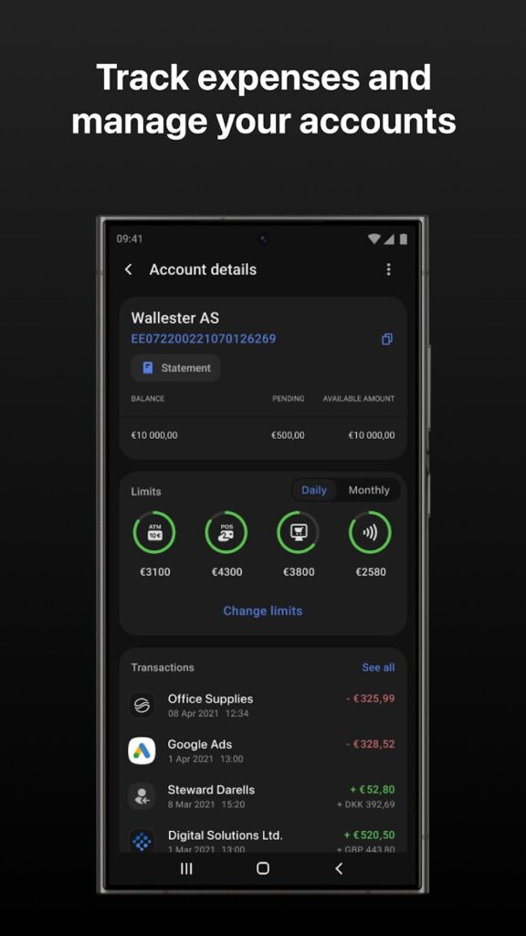Die Verwaltung erfolgt größtenteils über das Onlinebanking. Darüber hinaus kann man die Wallester Premium Kreditkarten und das Kartenkonto jederzeit über die App einsehen.