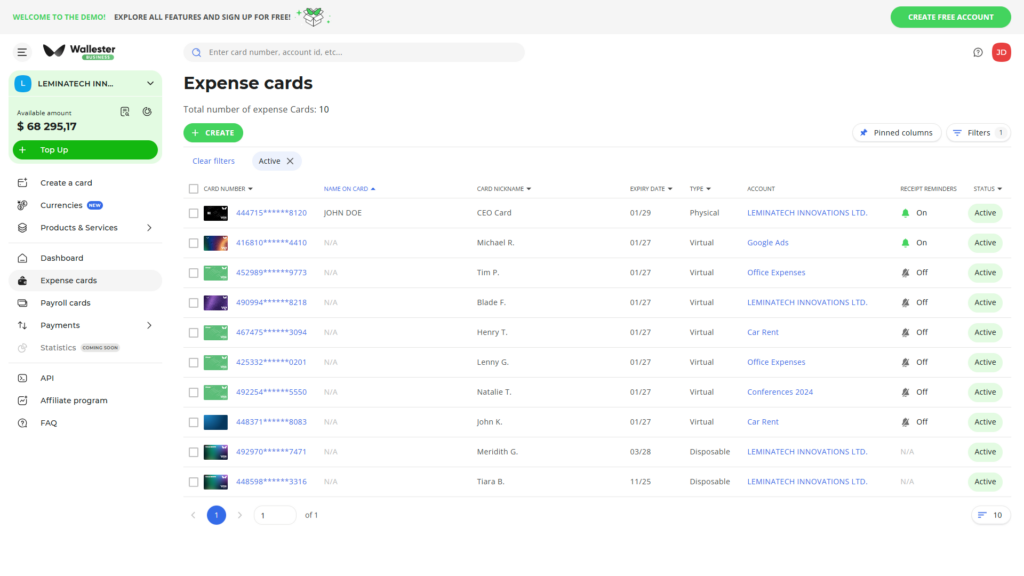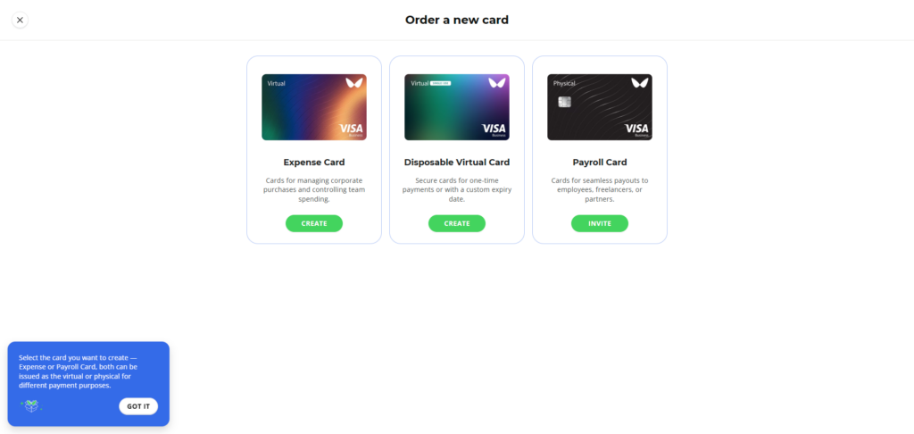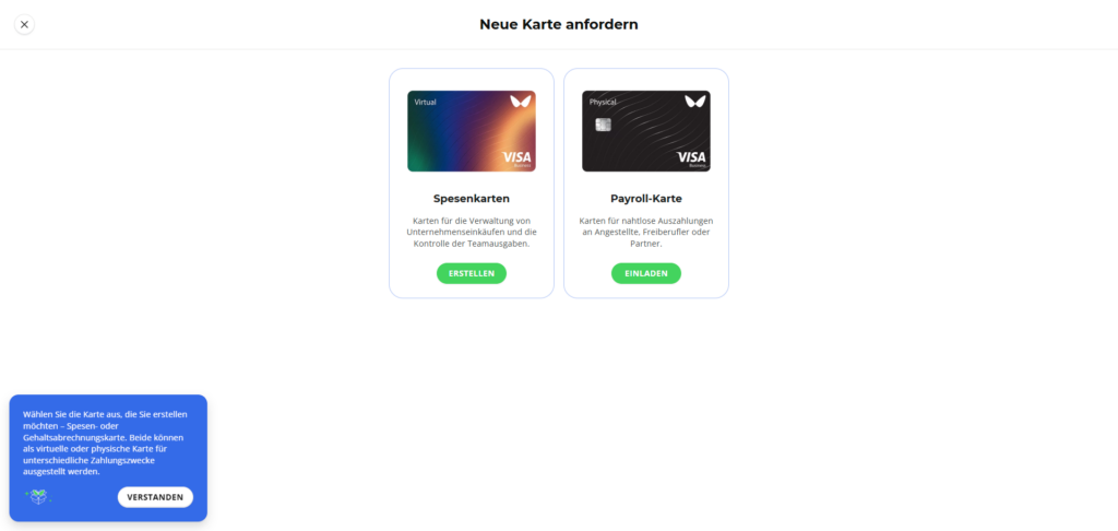 Bis zu 3.000 virtuelle Visa Business Kreditkarten lassen sich im Wallester Premium Paket anlegen. Jede weitere virtuelle Karte kostet monatlich 0,20 €. Für physische Karten, die in unbegrenzter Anzahl bestellt werden können, fallen außer den Versandspesen keine Kosten an. Damit hat man sehr viel Luft nach oben, auch bei schnell wachsenden Unternehmen. Dafür bezahlt man allerdings auch 199,00 € monatlich.